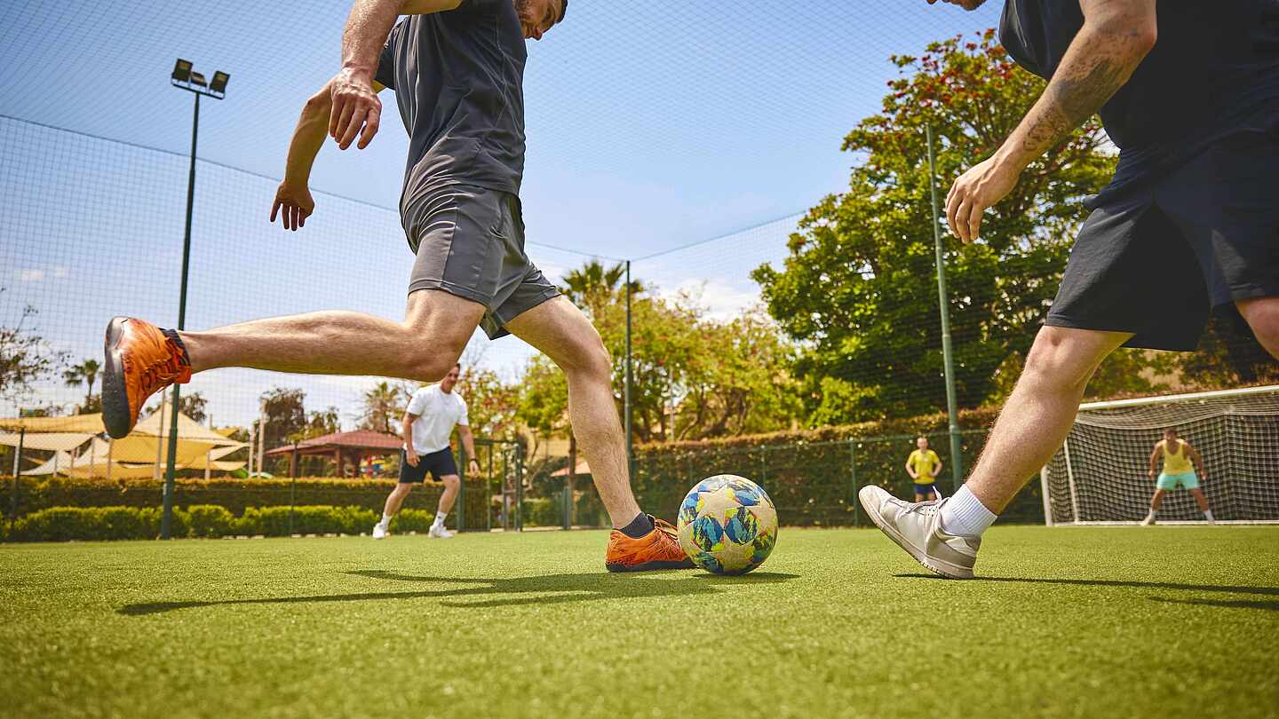 Du liebst es, in deiner Freizeit dem runden Leder hinterherzujagen? Dann musst du auch zur schönsten Zeit des Jahres nicht auf dein liebstes Hobby verzichten. Ab ins Trikot, Stutzen an, die Treter geschnürt und los geht's – ein TUI MAGIC LIFE Cluburlaub bietet Dir beste Voraussetzungen für einen unterhaltsamen Fußball-Kick zwischendurch oder ein ambitioniertes Training während des Urlaubs.