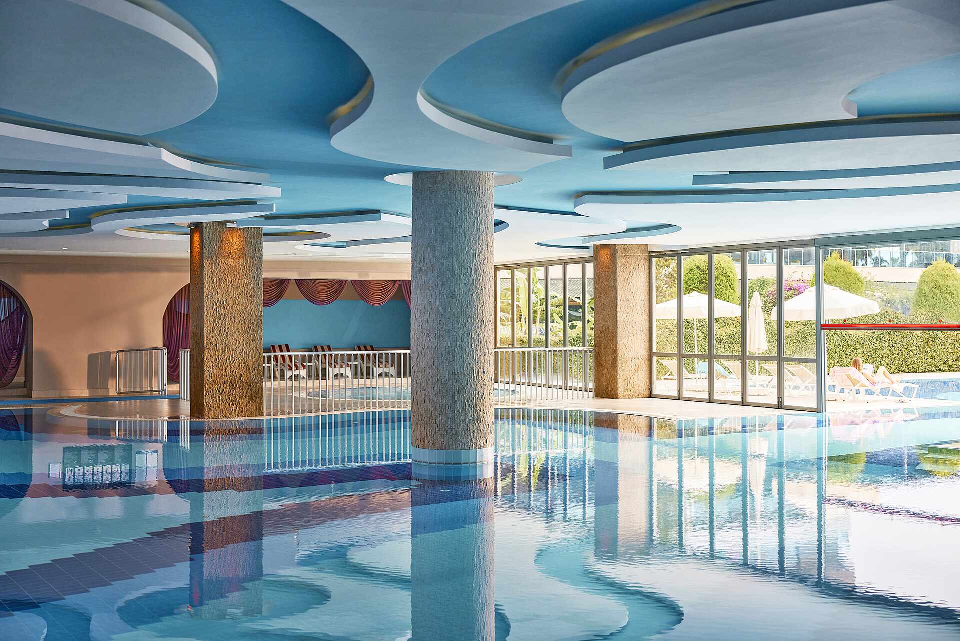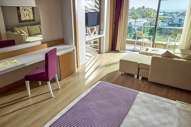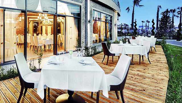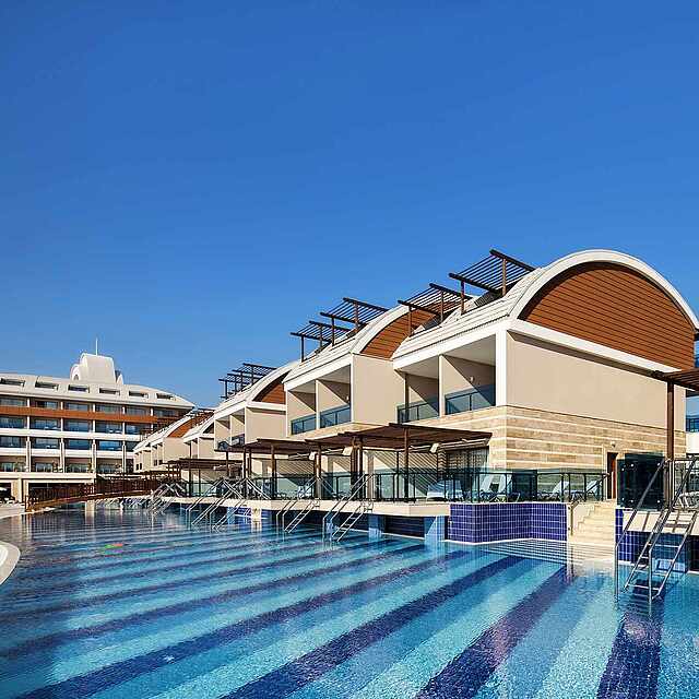 The modern and appealing resort is located on a beautiful and wide sandy beach near Side. Here you can enjoy resort life to the full. In addition to an extensive range of sports and fitness activities, including ZUMBA and beach volleyball, there is a varied entertainment programme to round off the entertainment options for young and old. The large pool area includes both a relaxation pool and indoor pool as well as an activity pool and Aqua Park, and appeals to both couples and families. The main restaurant and the speciality restaurants promise many delicious highlights. If you want, you can go on a little shopping spree in the surrounding towns of Side and Colakli.