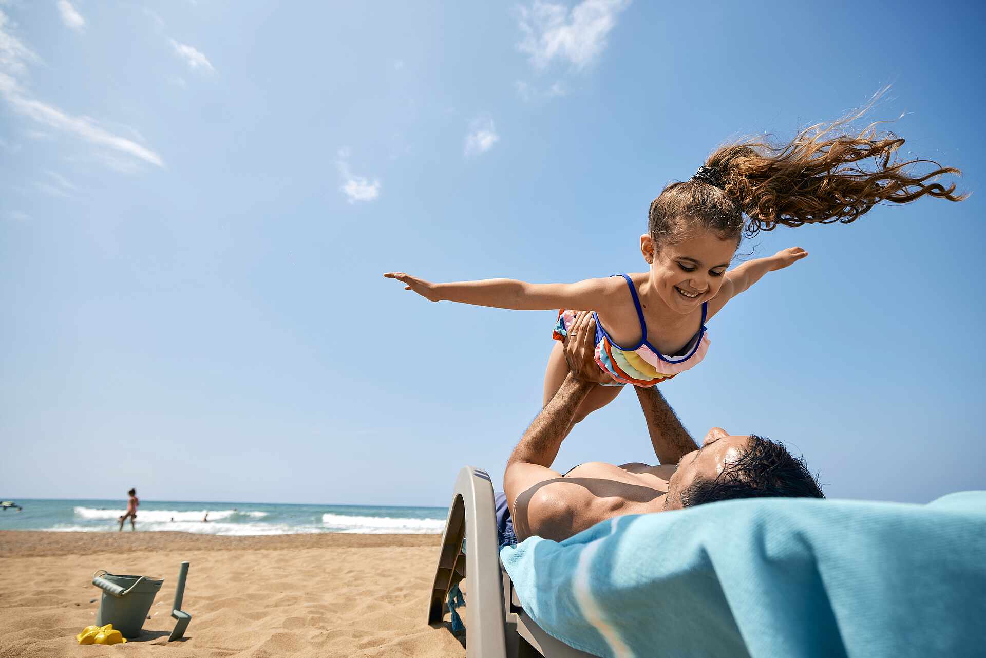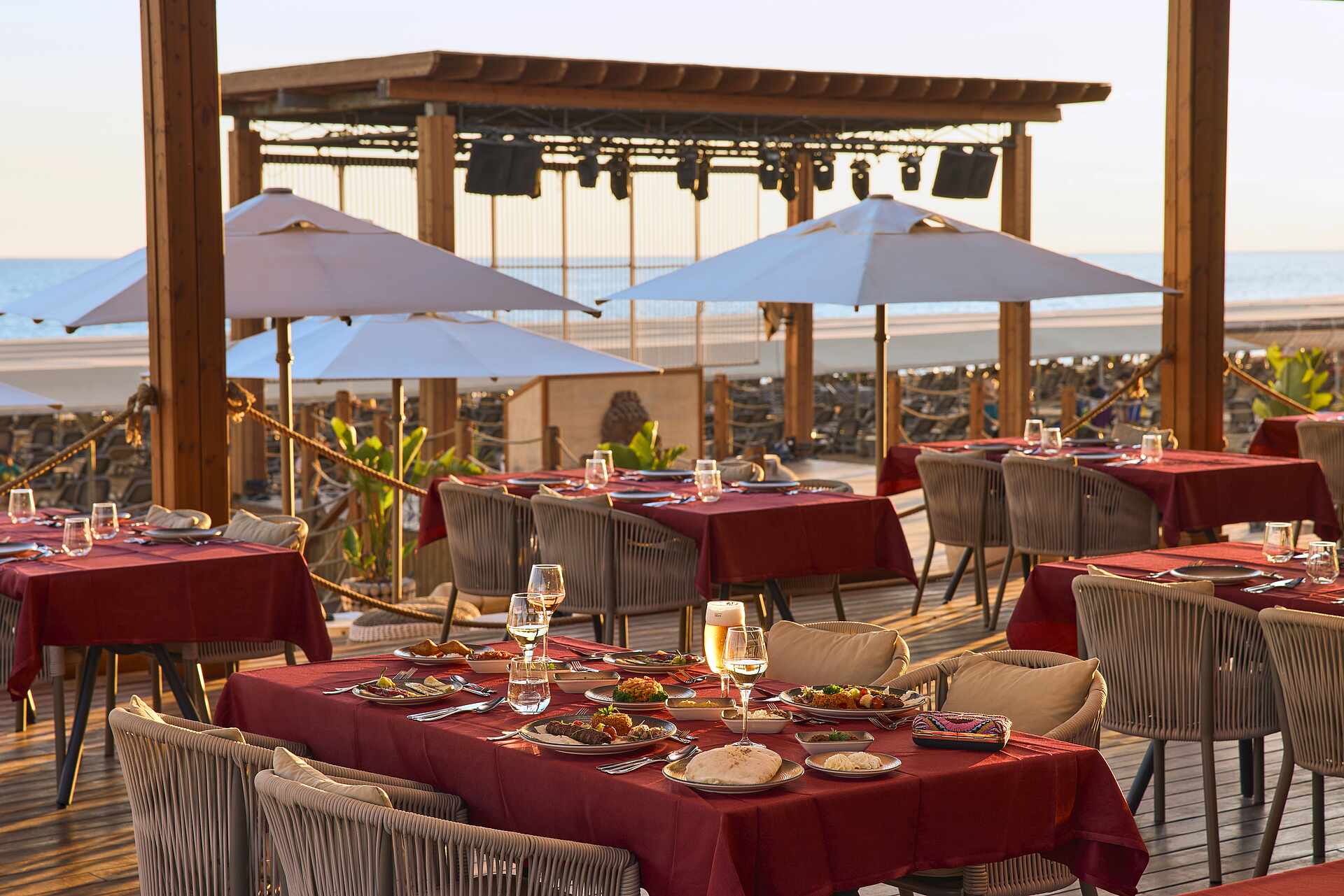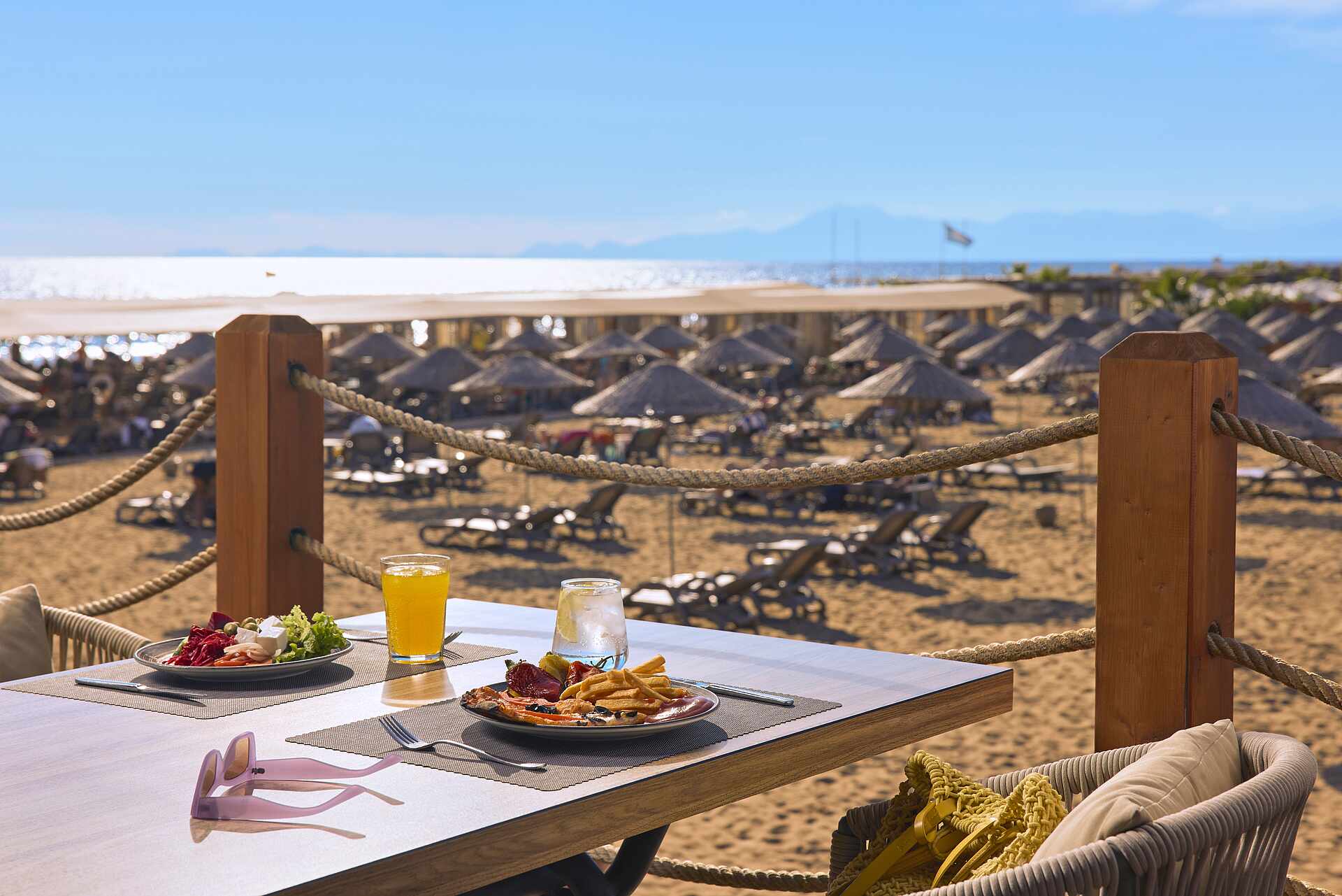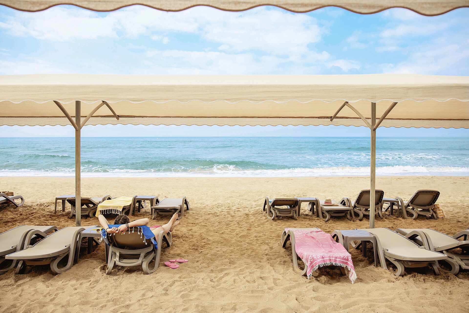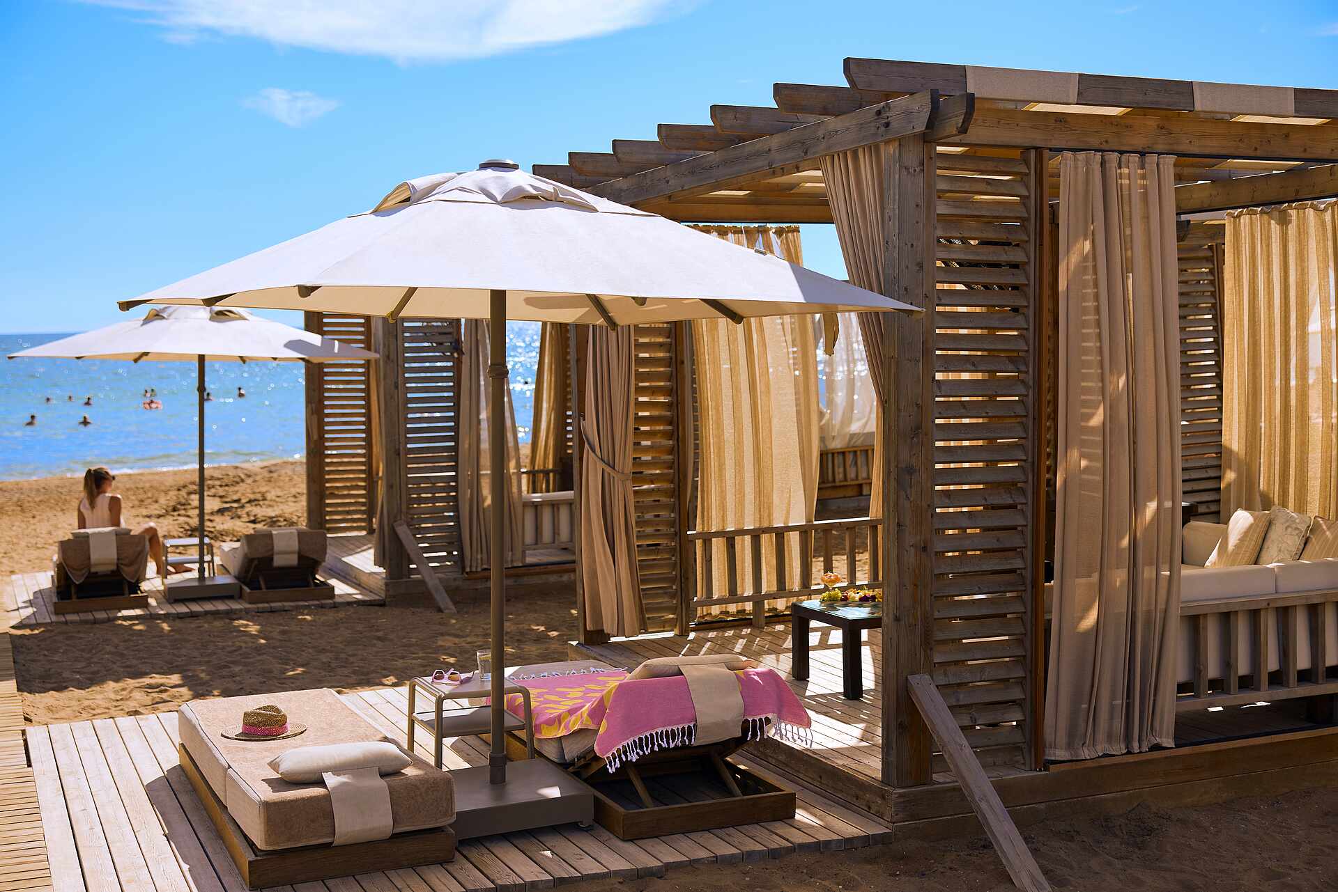 - Sunbeds, parasols and bath towels included