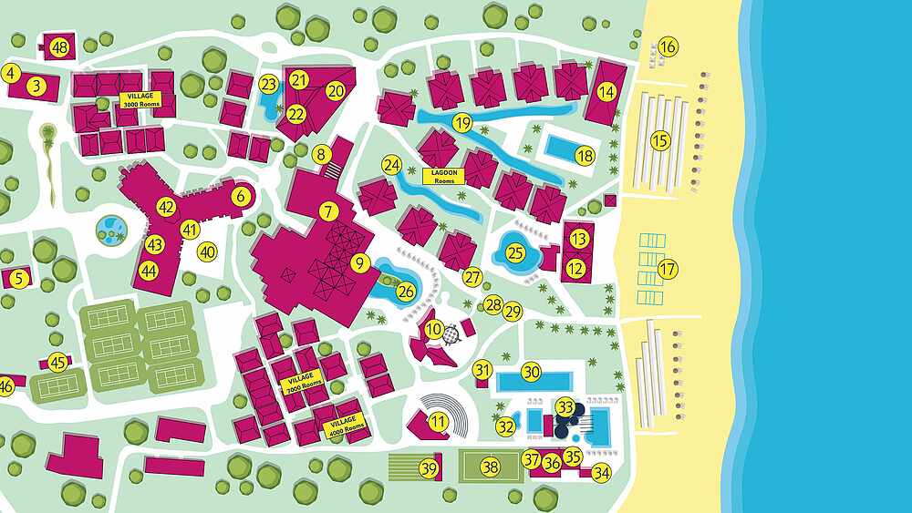 - Reserved sun loungers with umbrella at Lagoon pool or beach