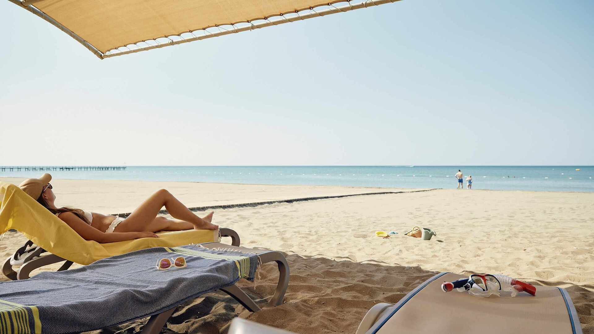 The choice is yours: relax on the beach and in the wellness area or enjoy a game of beach volleyball, hit the water slides or go biking.